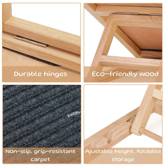 Adjustable Wooden Pet Ramp – Foldable, Non-Slip for Dogs and Cats