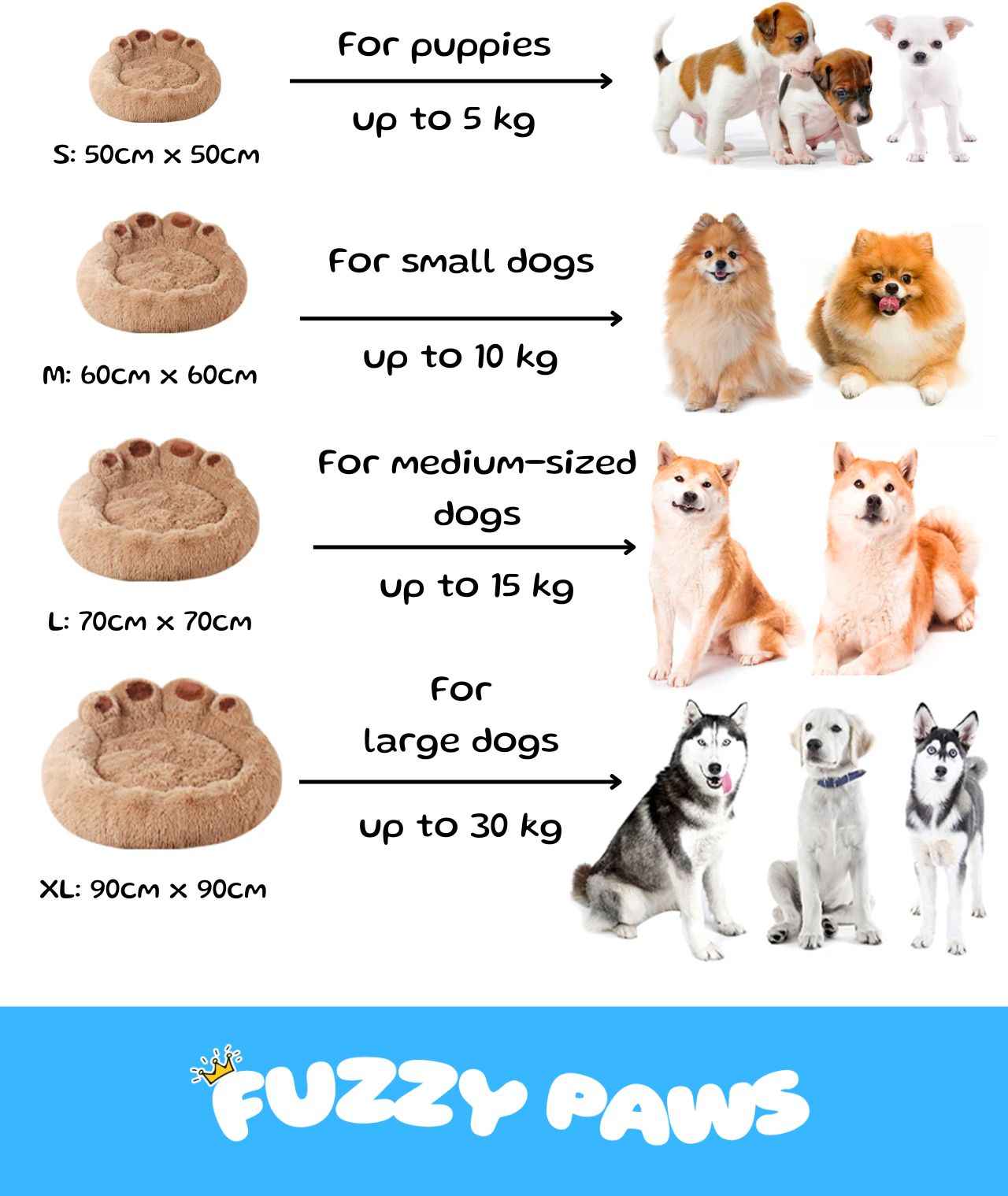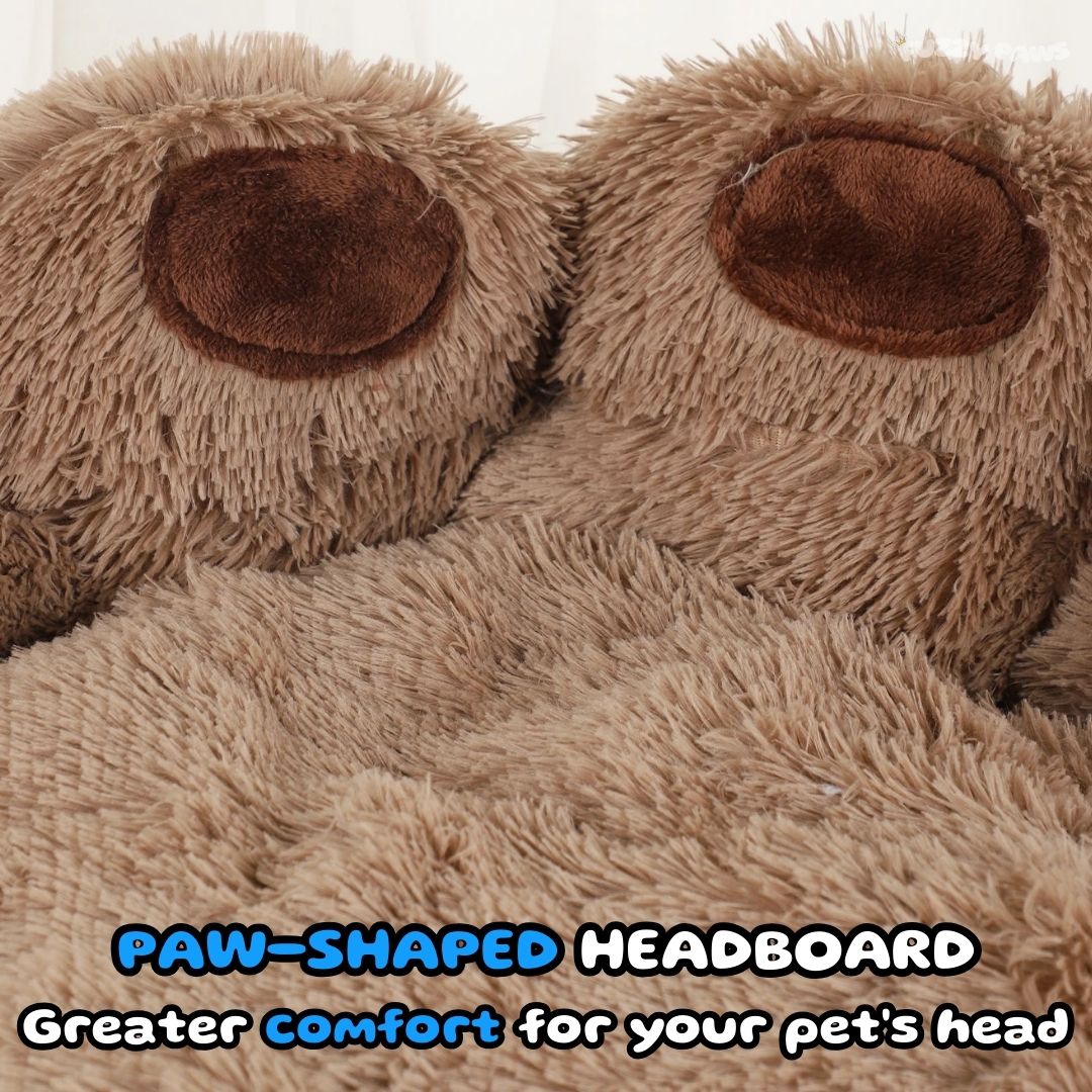 Cloud-style dog bed with a 4-paws shaped design. Made with ultra-soft cotton filling to provide cushioning and a plush surface for resting. Features a removable, machine-washable cover for easy cleaning.
