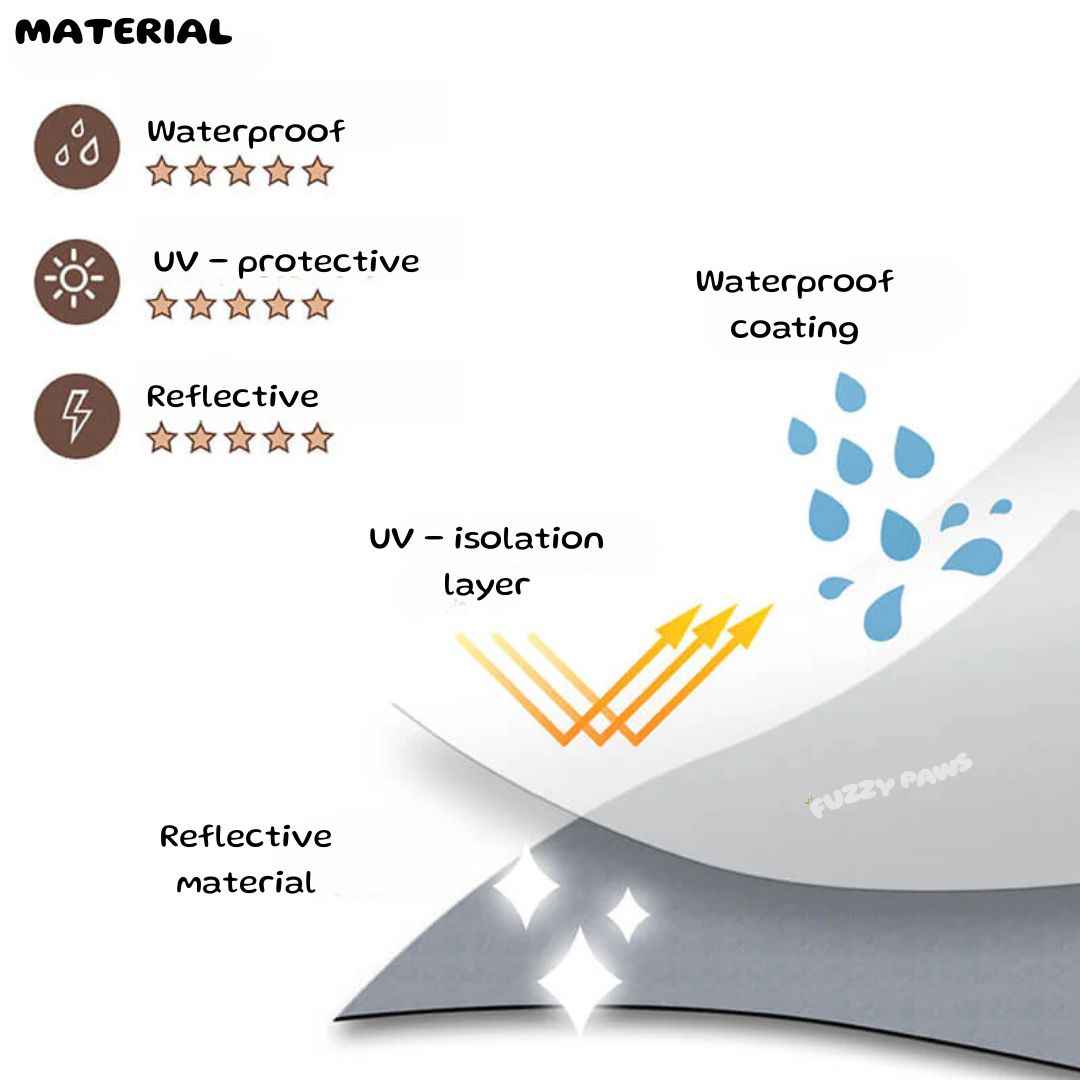 Waterproof polyester — helps keep your dog dry during rainy walks